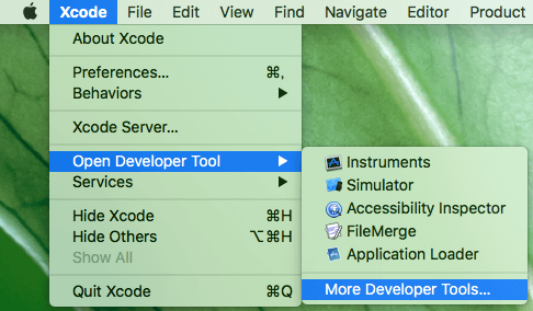 To install Xcode Command Line Tools, launch Xcode and click Xcode - Open Developer Tool - More Developer Tools… from menu.